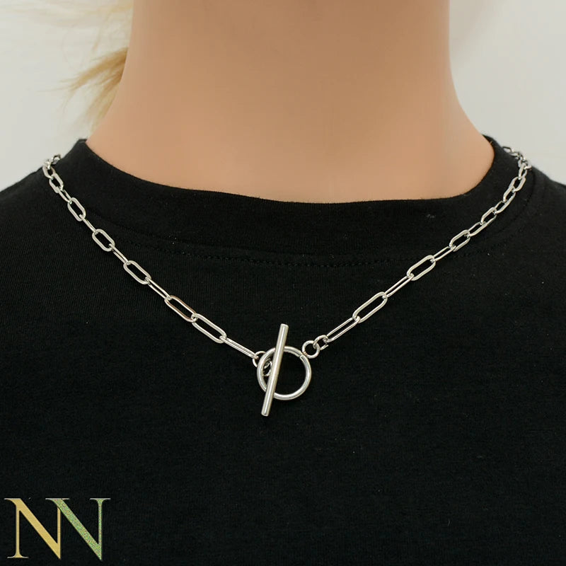 10 x Stainless Steel Necklace Wholesale Paper Clip Link Chain for Women Toggle Clasp Necklace
