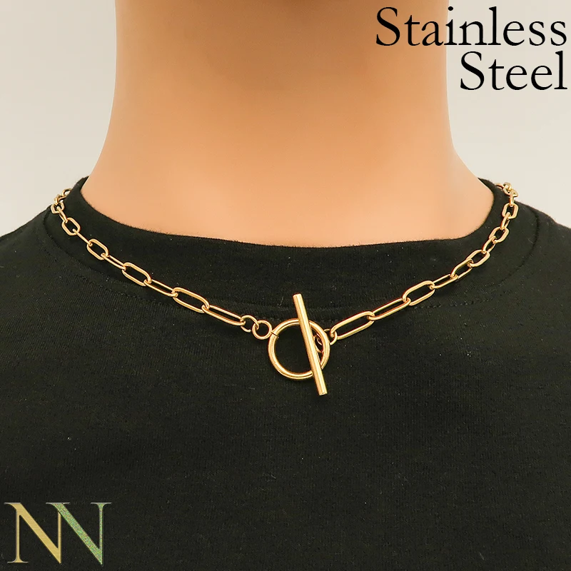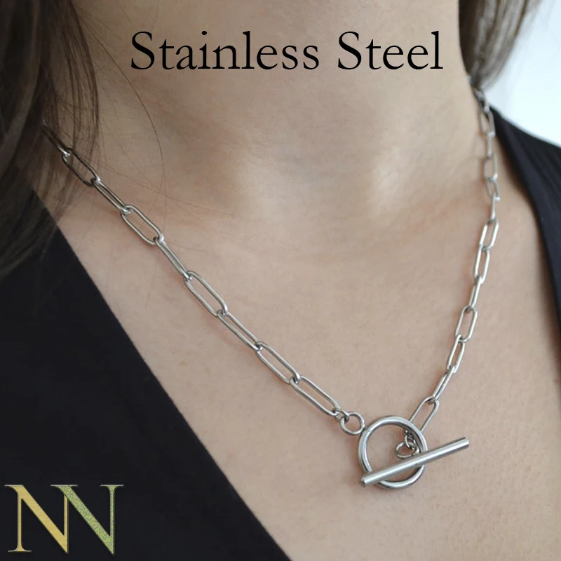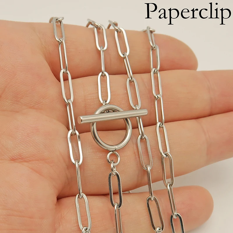 10 x Stainless Steel Necklace Wholesale Paper Clip Link Chain for Women Toggle Clasp Necklace