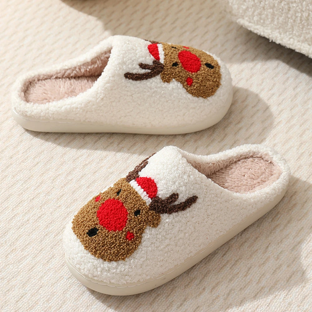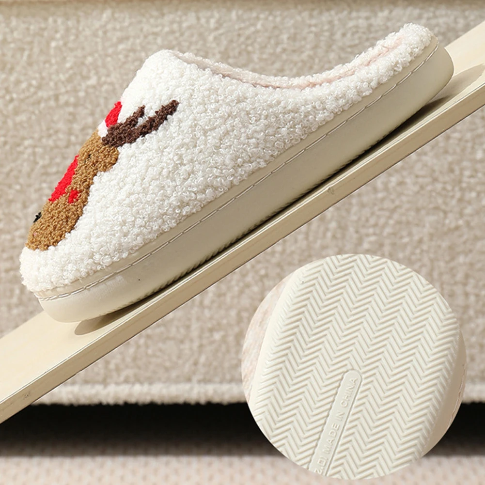 Christmas Deer Slippers Winter Platform Shoes Anti Slip Women Men Slip-On Comfy House Slippers Women Fuzzy Fluffy Slippers for Winter for Christmas Gift